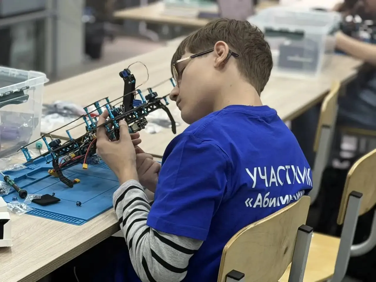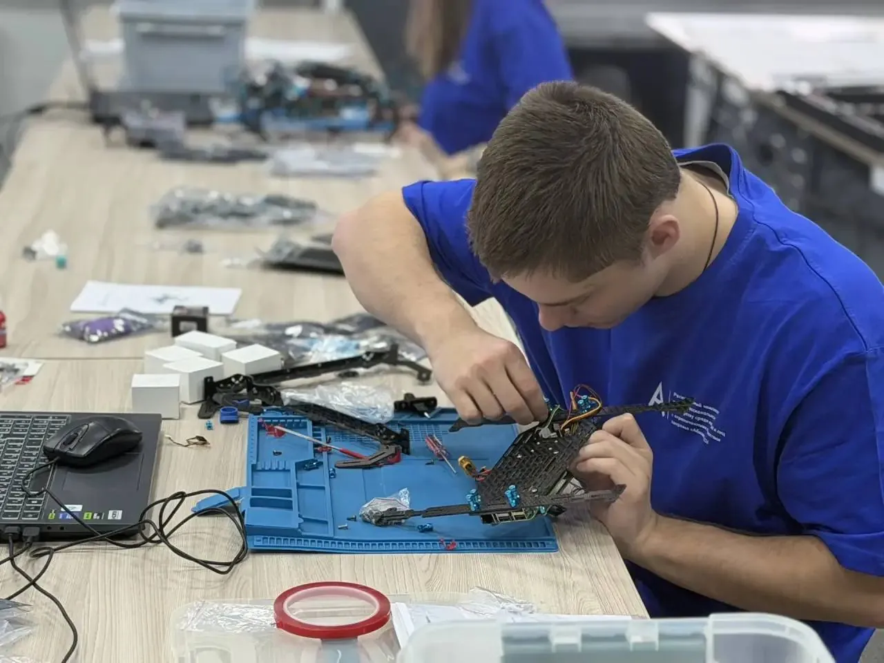 Задание было максимально приближено к реальной практике: участники доработали уже частично собранный дрон, выполнили его настройку и запустили на стенде пилотирования БАС. Звучит просто, но требует точности, внимательности и понимания всех тонкостей процесса.