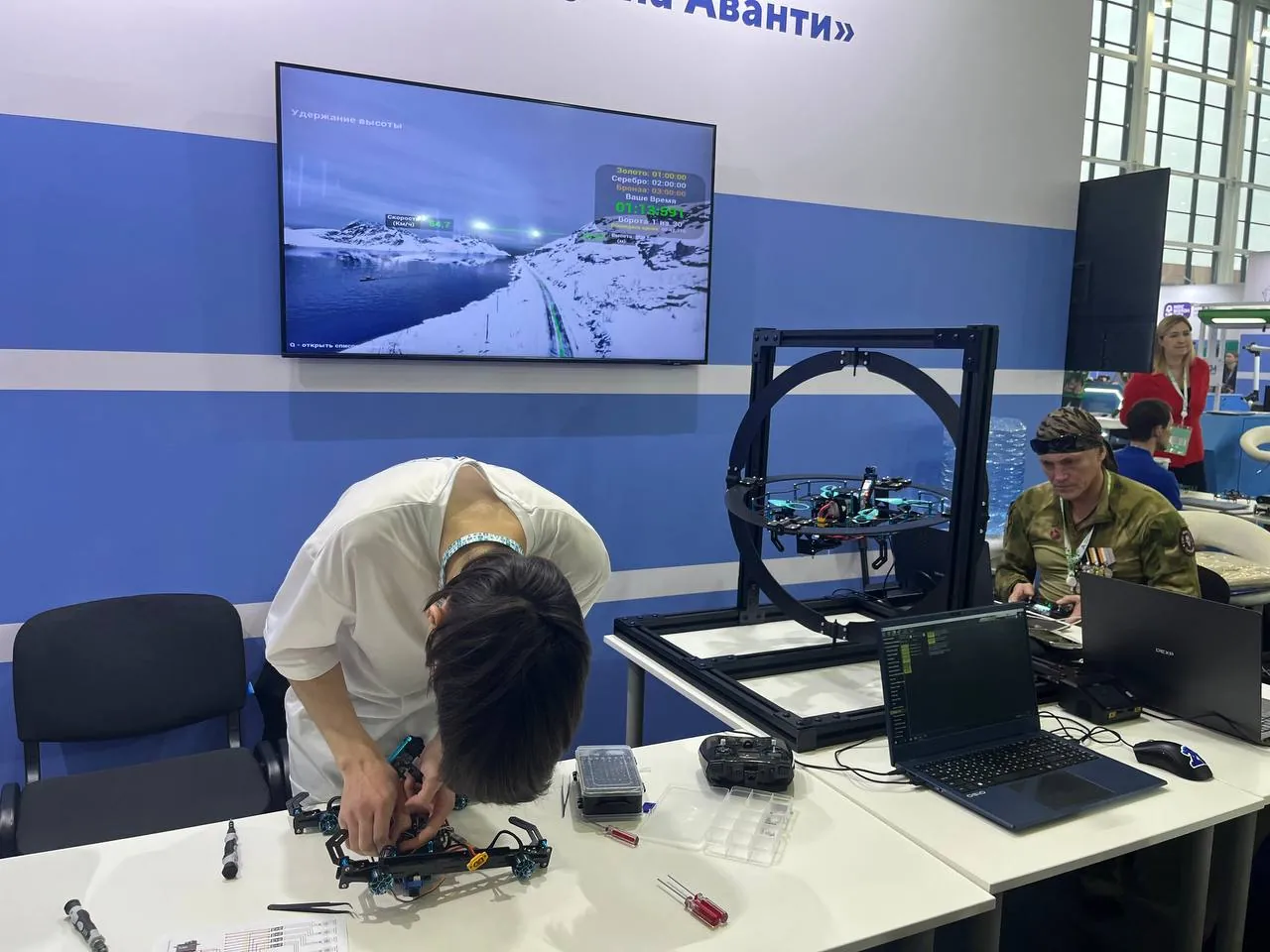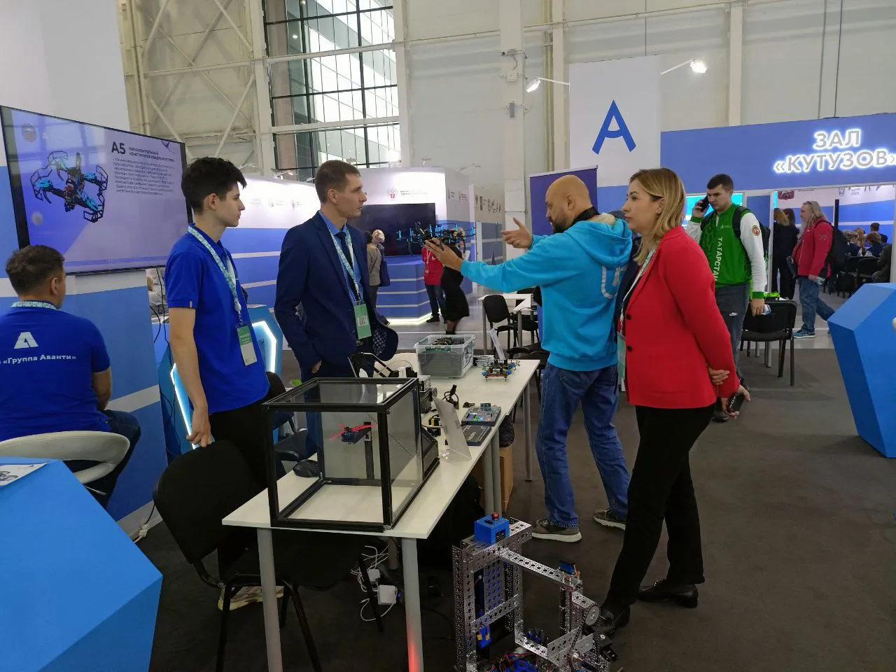 Также в рамках чемпионата работала тематическая выставка, где компании демонстрировали свои инновации. Сотрудники НПО «Группа Аванти» представили серийную линейку образовательных квадрокоптеров и робототехническое оборудование. Совместно с представителями Казанского энергетического колледжа был проведен интерактив по сборке, настройке и запуску квадрокоптера А5 на стенде пилотирования БАС, а также отдельное занятие по управлению мини-дроном Тинивуп, где все желающие смогли освоить управление устройством. Все демонстрации проходили на оборудовании собственного производства, что сделало опыт участников максимально практическим и увлекательным.